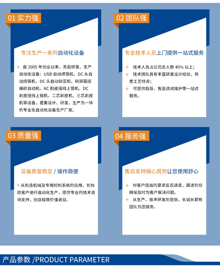 DC頭自動剝皮焊錫機主要用于DC系列、RCA系列的自動焊接,由振動盤自動供料、卡線、分線、剝線、焊接等工位組成。設備結構緊湊,焊接定位具有速度快、精度高的特點。完成是在三維空間中實現線與焊點的對接焊接,焊接完成的產品質量穩定。