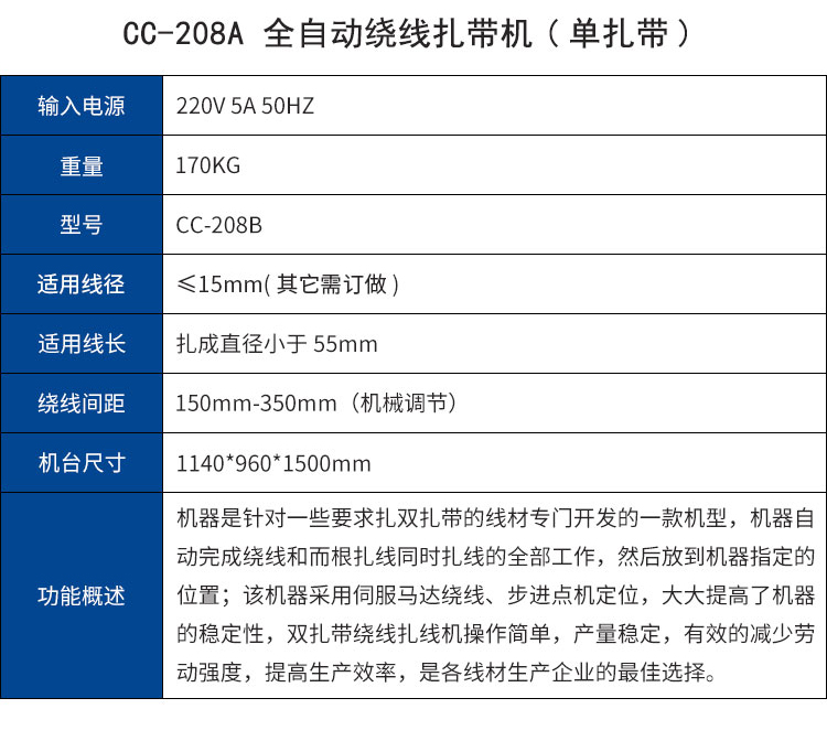 本扎線機(jī)是針對一些要求扎成雙扎帶的線材專門開發(fā)的機(jī)型,機(jī)器自動(dòng)完成繞線和二根扎線的全部工作,然后放到機(jī)器指定的位置。