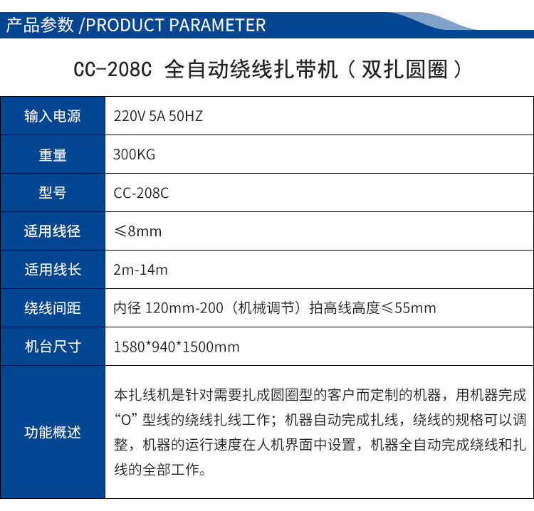 本扎線機(jī)是針對需要扎成圓圈型的客戶而定制的機(jī)器,用機(jī)器完成“O”型線的繞線扎帶工作。